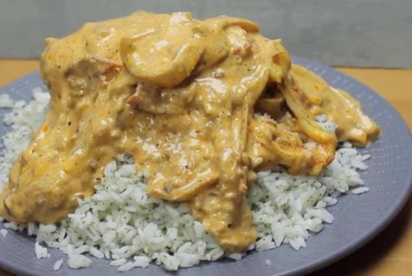 Poslužite sa pirinčem, a možete i sa pire krompirom.