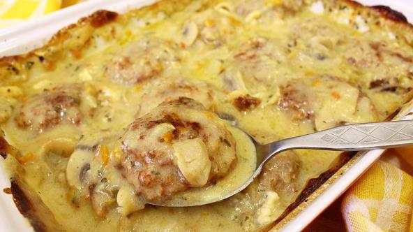 Ćufte u sosu sa šampinjonima iz rerne su odličan predlog ručka uz pire krompir. Sos je kremast i preukusan.