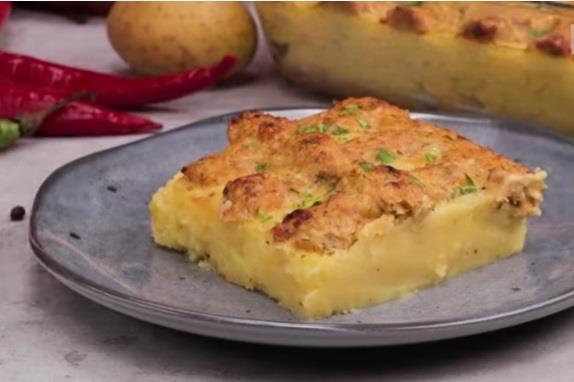 Skuvajte krompir, zatim ga prebacite u posudu, posolite, dodajte maslac, žumance i provansa začin. Napravite pire. U pleh dimenzija 15x20 cm sipajte krompir pire i lepo poravnajte.