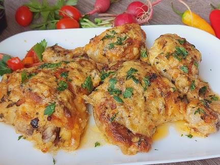 Dodajte i malo ulja, pa svaki batak i karabatak dobro premažite i ređajte u podmazanu tepsiju. Ako ostane premaza ubacite pored mesa, pa pospite peršunom. Pecite u zagrejanoj rerni na 210°C oko 50-60 minuta da se meso lepo ispeče i porumeni.