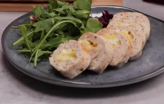 U mleveno meso dodajte pahuljice, so, biber, muskatni oraščić, origano i sve sjedinite. Pek papir premažite maslinovim ulje, stavite 2 kašike mlevenog mesa, prstima sjedinite i utapkajte, preko mesa stavite malo seckanih jaja i rendani kačkavalj. Urolajte, a zatim sklonite pek papir pa prstima doradite rolat. Pospite začinskom paprikom, pa opet urolajte u pek papir. Zatvorite ga kao bombonu. Tako napravite nekoliko rolata dok ne utrošite sastojke.