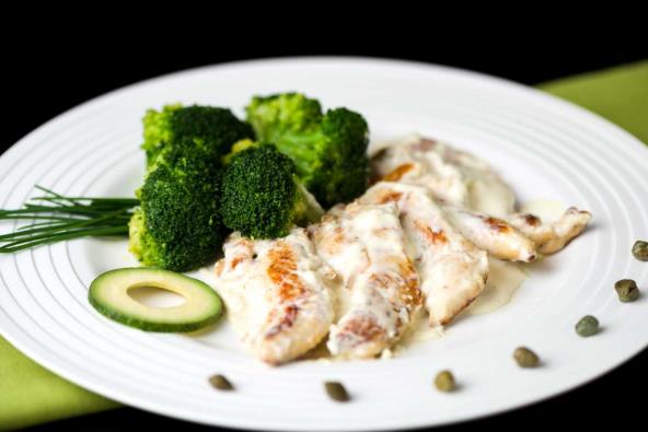 Meso prelijte bešamelo, a pored poslužite povrće.