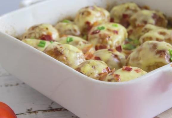 Pančetu iseckajte sitno, pa je blago propržite i ostavite sa strane. Pomešajte pavlaku, jogurt i majonez i dodajte začine. Prelijte preko ispečenih mladih krompirića, pa preko narendajte sir po izboru i pospite prženom slaninicom kao i seckanim lišćem mladog crnog luka.