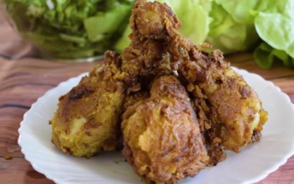 Sa mesa skinite kožicu i malo zasecite. Zatim posolite i dodajte senf i jogurta, pa lepo uvaljajte meso. Pokrijte providnom folijom, pa stavite u frižider preko noći ili minimim 2 sata. Sve začine i brašno pomešajte, pa marinirano meso lepo uvaljajte u tu smesu. Pržite na laganoj vatri sa jedne i druge strane dok ne bude gotovo.