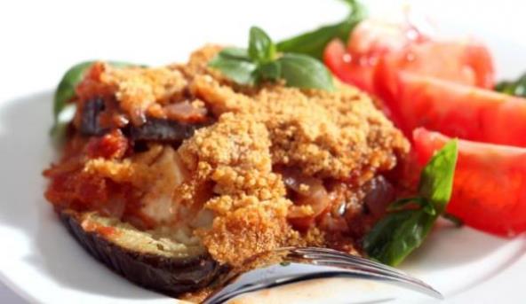 1.Zagrejte rernu na 175 stepeni. Patlidžan isecite na tanke kriške. Jaja umutite, pa kriške patlidžana potopite u jaja, a zatim u prezle. U pleh poređajte kriške patlidžana i zapecite u zagrejajnoj rerni oko 5 minuta sa obe strane.