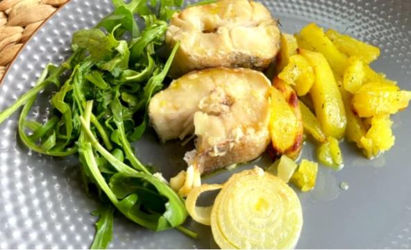 Ovako pripremljen oslić je veoma sočan, a ako ne želite pečeni krompir, možete da poslužite sa krompir salatom, pirinčem...