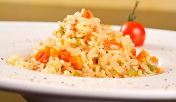 1. Sitno iseckati luk. Zatim ga staklasto prodinstati u jednoj posudi sa kaškom maslaca. Dodati pirinač i kratko sve zajdno prodinstati. Naliti pirinač vrelom supom.