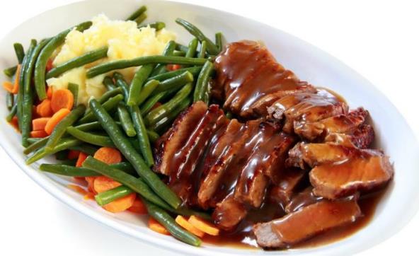4. Procediti boraniju i izmešati je s šargarepom. Servirati pripremljeno povrće uz meso koje smo iseckali na režnjeve i prelili sosom. Za prilog možete dodati i pire krompir. Servirati uz suvo crno vino po izboru.