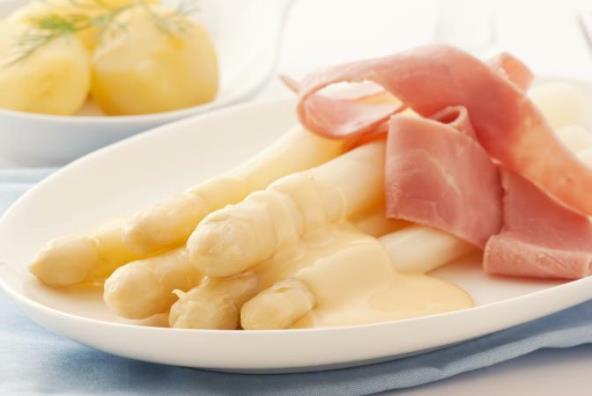 3. Procediti špargle i servirati ih uz pripremljeni sos i pršutu.