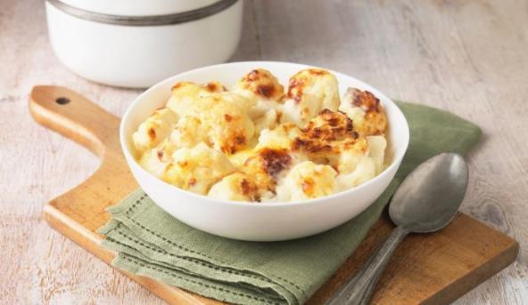 4. Pomešajte senf i dve trećine količine kačkavalja i dodajte sosu. Karfiol stavite u dublji pleh ili vatrostalnu posudu. Prelijte povrće pripremljenim sosom, vodeći računa da prekrijete sav karfiol. Pospite preostalim kačkavaljem i stavite u rernu. Pecite karfiol oko 25-30 minuta, dok ne porumeni.