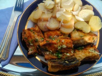 Rad: Skušu dobro očistiti i oprati u nekoliko voda i iseći na filete. U šericu sipati 1 l vode i dodati sirće i potopiti ribu da ostoji dva sata. Izvaditi je isprati i ocediti, a zatim posoliti i uvaljati u brašno i pržiti u dubokom ulju. Vaditi na tanjir koji ste obložili salvetom da upije masnoću. Iscediti u činijicu pola limina, sitno seckanog belog luka i pešuna i time preliti ribu i poklopiti pola sata da upije. Kao prilog predlažem krompir salatu. Prijatno!