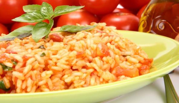 1. Iseckajte luk i propržite na ulju ili malo putera. Dodajte pirinač, promešajte i dodajte paradajz. Kuvajte pet minuta.