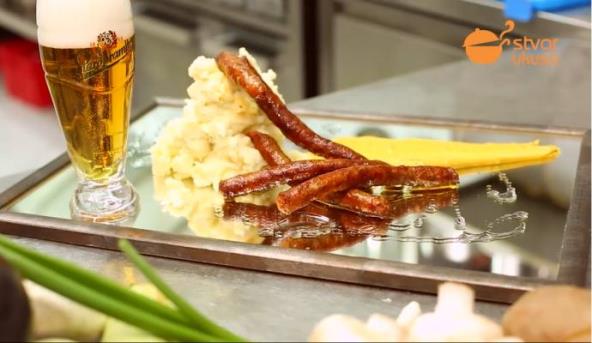 Priprema kobasica: U mešavinu mesa dodajte mlevenu slatku papriku, malo ljute paprike, so i biber, i dodajte Staropramen pivo. Masu dobro izmešajte i punite u domaće prirodno jagnjeće tanko crevo koje ide na jedan dim od nekoliko sati.