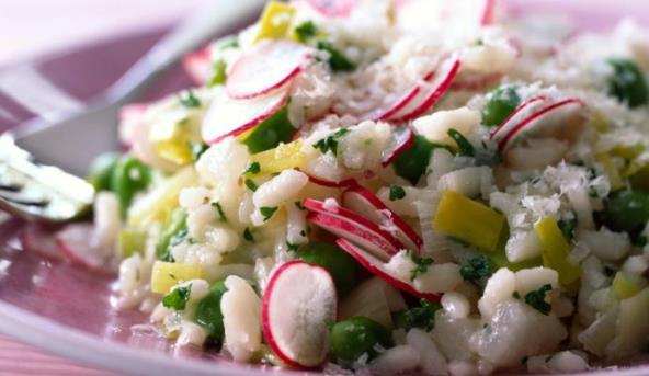 5. Kada je rižoto gotov u njega umešajte 200 ml hladnog pirea i parmezan.