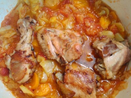 Naseći šargarepu na kolutove papriku i ljutu papričicu pa sve dinstati da ispari tečnost. Na kraju dodati oljušten sečen paradajz na krugove. Propržiti još desetinu minuta pa dodati začin so biber.