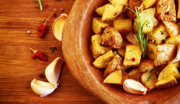4. Krompirima dodajte so, biber, začine, nekoliko čenova belog luka i maslinovo ulje.
