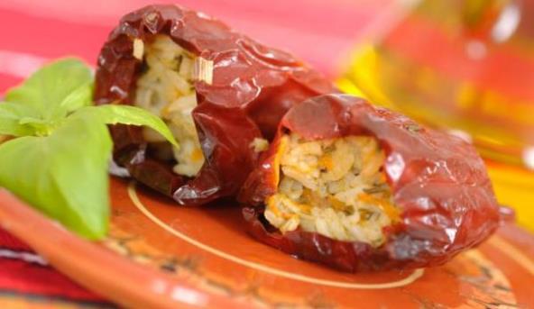 2. Za to vreme ostavite suve paprike da odstoje u toploj vodi, da bi se lakše napunile. Vodite računa da, prilikom punjenja, paprike ne napunite do vrha kako vam fil ne bi iscurio. Napunjene paprike poređajte u šerpu, dolijte malo vode (pa po potrebi dolivajte još ako ispari) i krčkajte na tihoj vatri dok pirinač ne bude skuvan.
