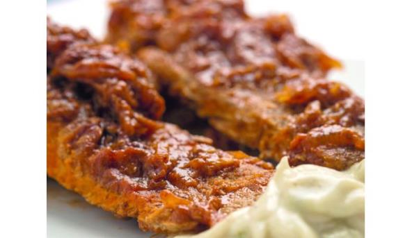 Crveni i crni luk iseckajte na rebarca. Beli luk na listiće. Šnicle uvaljajte u laneno brašno – ne u mleveni lan, već u brašno.