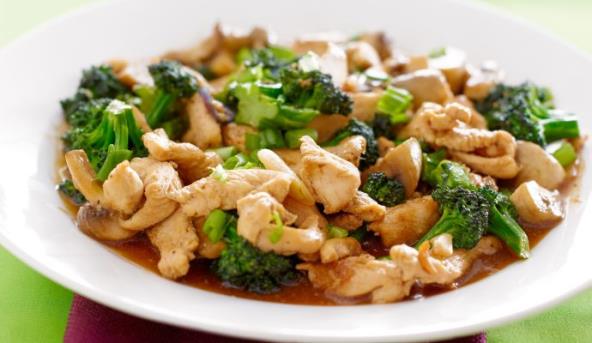 4. Pomešajte kukuruzni skrob sa ostatkom pilećeg bujona i sipajte u tiganj. Kuvajte uz mešanje dok se sos ne zgusne.