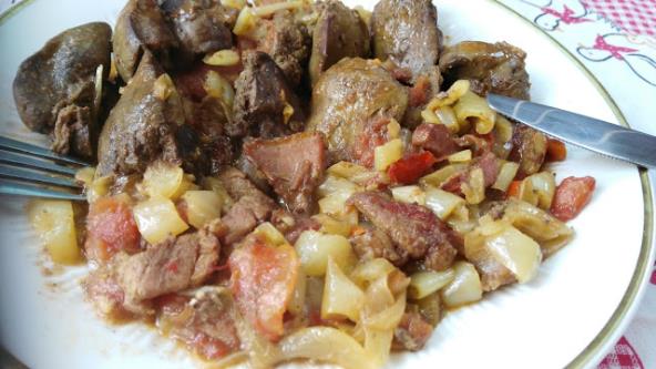 Na kraju dodati na kocke paradajz i pržiti još 5 min. Zatim u to vratiti džigericu i slaninu pa prokrčkati par minuta poklopljeno. Isključiti i naša džigerica je gotova.
