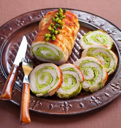 2. Istanjiti i zaciniti šnicle, pa premazati filom. Uviti u rolnice i pričvrstiti.