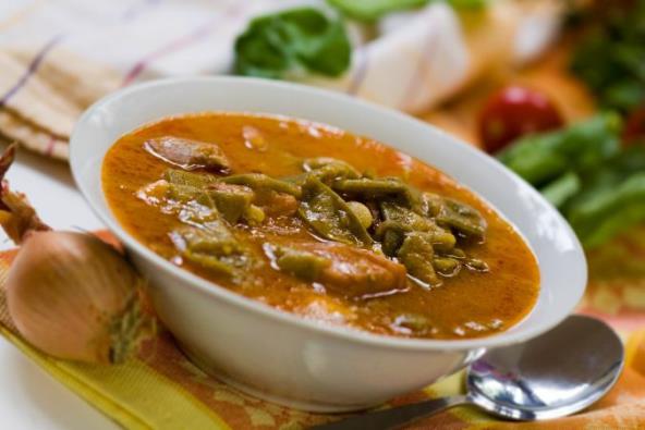 3. Očistite boraniju, dodajte mesu i kuvajte još 15 minuta. Kuvan beli pasulj na kraju kratko zagrejte u gulašu. Limun operite vrućom vodom pa tankim nožem ili ljuštilicom oljuštite koricu tako da dobijete tračice. Gulaš po potrebi još začinite solju i biberom, pospite tračicama limunove korice i poslužite.