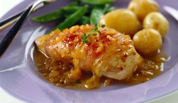 5. Stavite prsa u sos i dinstajte još malo. Dodajte pola čaše vode ako želite da sos bude ređi.