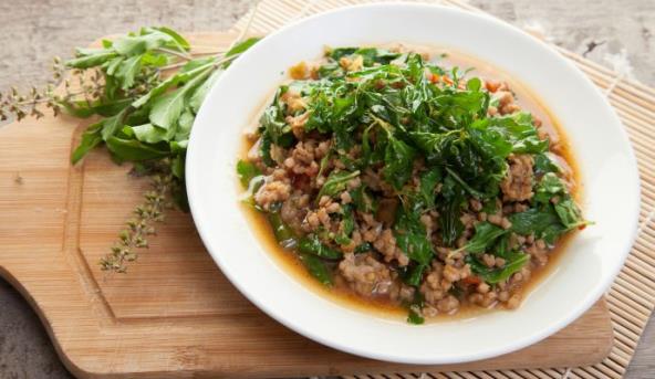 2. Dodajte piletinu i pržite je oko tri minuta dok ne postane ružičasta. Potom ubacite mahune mladog graška, kupus i ljutu papričicu.
