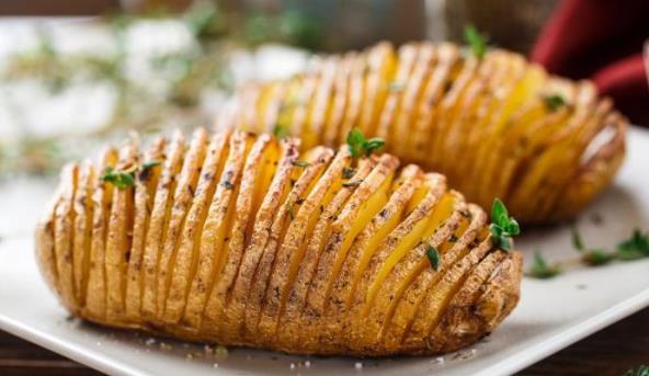 2. Isecite krompir na tanke kriške koje dosežu skoro do donje strane krompira kao na slici.