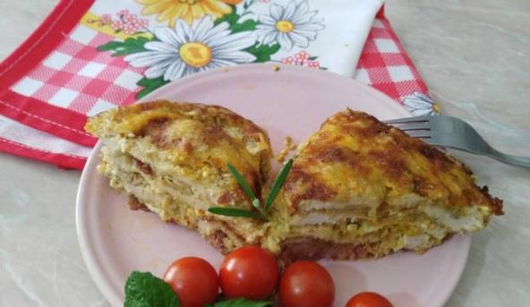 4. Narendati malo kačkavalja. Peći na 200 stepeni C oko 40 minuta. Služiti toplo uz sezonsku salatu.