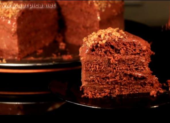 Preručite u kalup i odmah pecite. Pečeno je za 25 minuta ali vi ipak proverite čačkalicom. Kore ostavite da se ohlade pa ih prerežite da se dobiju četiri iste.