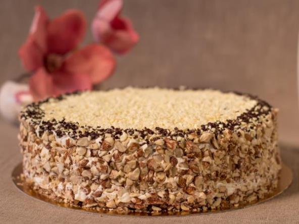 Za fil: Popariti orahe u malo ključale vode ili mleka, a kad se ohladi dodati maslac umućen sa prah- šećerom. Tortu filovati između slojeva i spolja, ali tako da se odozgo ostavi prostor za glazuru od čokolade.