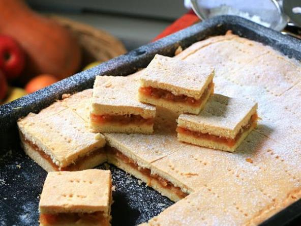 Ostavite da se hladi pa izrežite jednake kocke ili štangle i pospite šećerom u prahu.