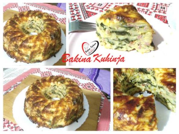 Dodati i spanać sa prazilukom i sve izmešati. Kuglof podmazati uljem pa sipati u njega makarone i poravnati. Peći na 200 stepeni C oko 40 min. Pečene makarone ostaviti u kuglofu da se malo prohlade istresti na tanjir i seći. Ukus je neopisivo dobar. Uživajte!