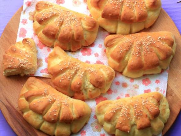 Preklopite kao školjku pa zarežite na 5 mesta (prikazano u videu)..Slažite na tepsiju obloženu pek papirom pa ih prekrijte krpom i ostvaite da nadođu.