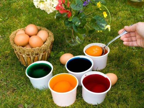 Najbolja varijanta su prirodne boje dobijene od raznog povrća. Lukovina daje prelepu crvenkasto-braonkastu boju, ljubičastu daje iseckani ljubičasti kupus, plavu zamrznuta borovnica, roze izrendana cvekla, a žutu - kurkuma.