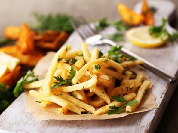 Ako želite da jedete pomfrit u Velikoj Britaniji naručite chips, koji se obično služi s prženim komadićem ribe, i tako postaje nacionalno jelo odnosno fish n' chips.