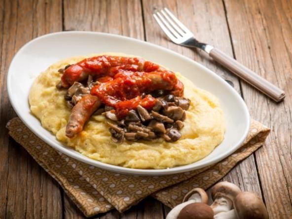Na tanjiru služiti kuvanu palentu sa Srpskom kobasicom, pancetom, grilovanim paradajzom i ajvarom. Uz jelo poslužiti kiselo mleko. Prijatno!