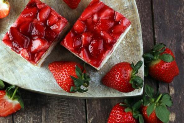 Na koru naneti fil od griza, preko njega fil od jagoda pa potom umućen šlag na uobičajen način. Dekorisati jagodama.