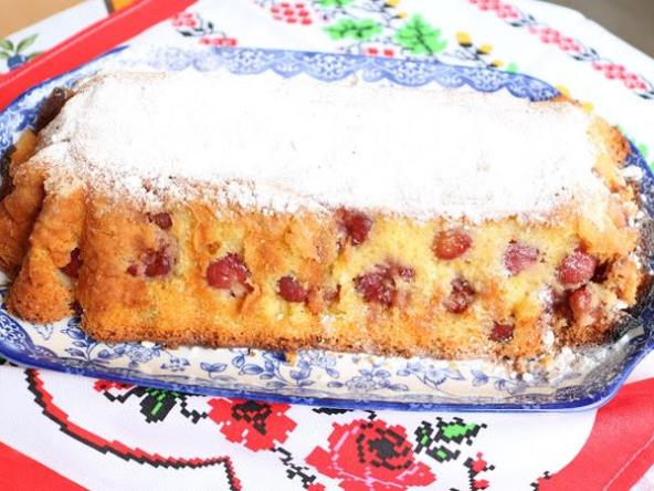 Pleh dobro podmazati uljem i pobrašnjivi. Sipati 1/3 umućenog testa u pleh pa poredjati očišćene trešnje, zatim testo pa trešnje.. testo i odozgo rasporedi trešnje.