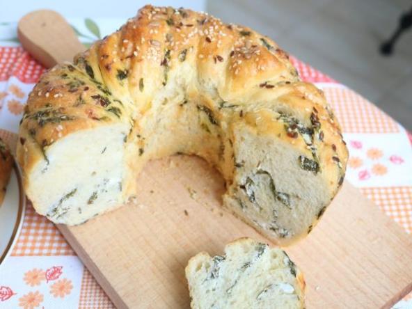 Prelepa punjena slana pletenica u kalupu za kuglof. Predivnog je mirisa, dekorativna, kao i ukusa koji će sigurno zadovoljiti sve one gurmane koji uživaju u kombinaciji spanaća i sira i neodoljivom ukusu toplog domaćeg peciva. Uživajte u svakom zalogaju.