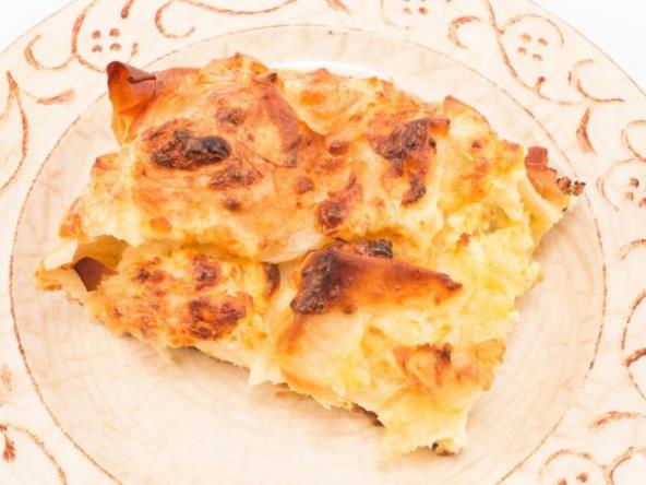Prethodno zagrejte pećnicu do 220 C. Sipajte kozji sir u veliku posudu za mešanje. Dodajte jaja, jedno po jedno i dobro ih umutite. Dodajte so, ulje, mleko i mutite dok se dobro ne sjedine. Stavite jedan sloj kora na dno pleha. Skoro sve preostale kore natopite ovom smesom i nabacajte ih u pleh. Sačuvajte bar tri kore koje ćete staviti na vrh, kao i nekoliko kašika smese. Pokrijte celu smesu sa preostalim korama. Isecite puter na nekoliko komada i stavite na kore. Preostalu umućenu smesu razmutite sa kašikom mleka i premažite gornju koru. Pecite oko 40 minuta, dok ne porumeni. Okrenite na tanjiru.