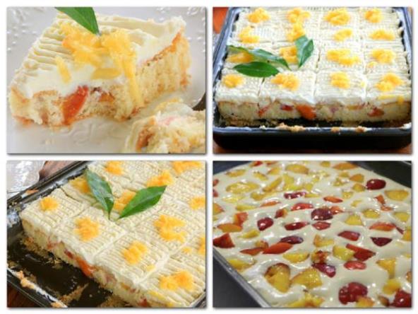 Uključite rernu na 180 stepeni, tepsiju srednje veličine namažite margarinom i pospite brašnom. Breskve operite i iseckajte.