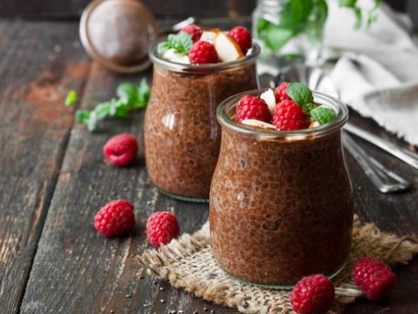 Čia semenke pomešajte sa kakaom. Dukatos Inspiracija nugat grčki jogurt umešajte u bademovo mleko i prelijte preko čia semenki. Sve promešajte ili umutite u blenderu.