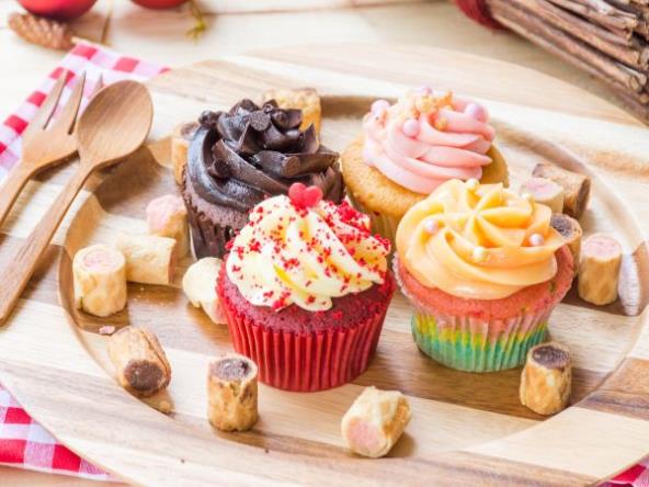 Umutiti maslac sa žumancima. Zatim dodati banane (predhodno ispasirane) i mutite dodajući brašno i prašak za pecivo. Kada umutimo masu, izlivamo u kalupe za mafine i pečemo na 160 stepeni oko 25 minuta. Za dekorisanje umutiti oko 200ml slatke pavlake.