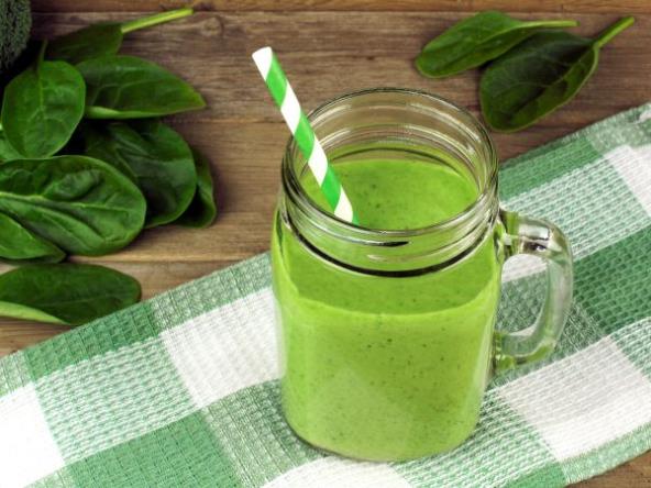 Kao bazu koristite pola litre soka od jabuke. Dodajte dve šake mladog spanača, opranog i odrezanih peteljki, dve kašike lešnika, jednu bananu, čajnu kašiku Matcha praha i jednu malu kašičicu chia semenki. Možete dodati i par kapi stevie ili cimeta da biste pojačali ukus. Popijte ga kao blagu zamenu za kafu.