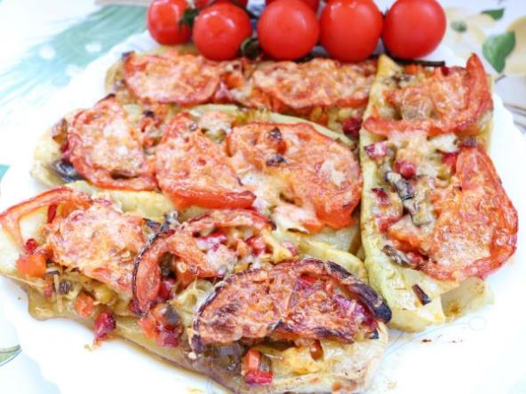 Odozgo pokriti kolutovima paradajza.