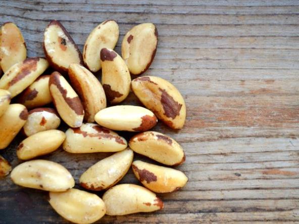 Iz hrane daleko najbogatiji izvor selena su brazilski orasi. Jedan orah može sadržati i do 1000 mcg selena. Osim oraha, najznačajniji izvori selena za čoveka su namirnice životinjskog porekla: iznutrice, posebno bubrezi i jetra, plodovi mora, meso, a nešto slabiji izvor su žitarice i mlečni proizvodi. Voće i povrće sadrže selen u malim količinama, a izuzetak je beli luk koji može sadržati i do 50 puta više selena u odnosu na slično povrće. Osim toga, 10-45% selena gubi se tokom termičke obrade hrane.