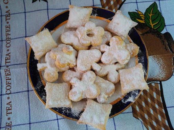 Razviti oklagijom i vaditi keksiće. Peći na 200 stepeni dok keksići ne porumene. Na kraju keksiće pospite šećerom u prahu i služite.