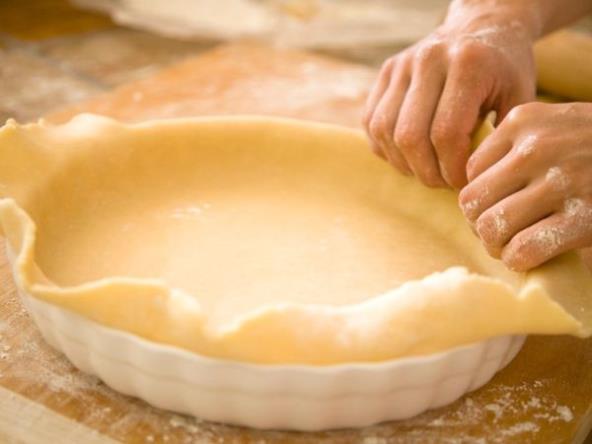 5. Stavite testo nakratko u frižider, a nakon toga ga izbodite sa viljuškom, prekrijte folijom i na foliju stavite manji kalup za pite ili naspite pasulj, da se testo ne bi podizalo za vreme pečenja i pecite 15 minuta, nakon toga skinite foliju i pasulj i pecite još 8-10 minuta. Punite filom po želji.